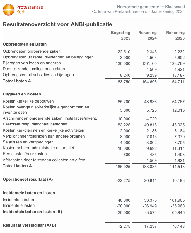 | Naam ANBI: | Hervormde Gemeente Klaaswaal |